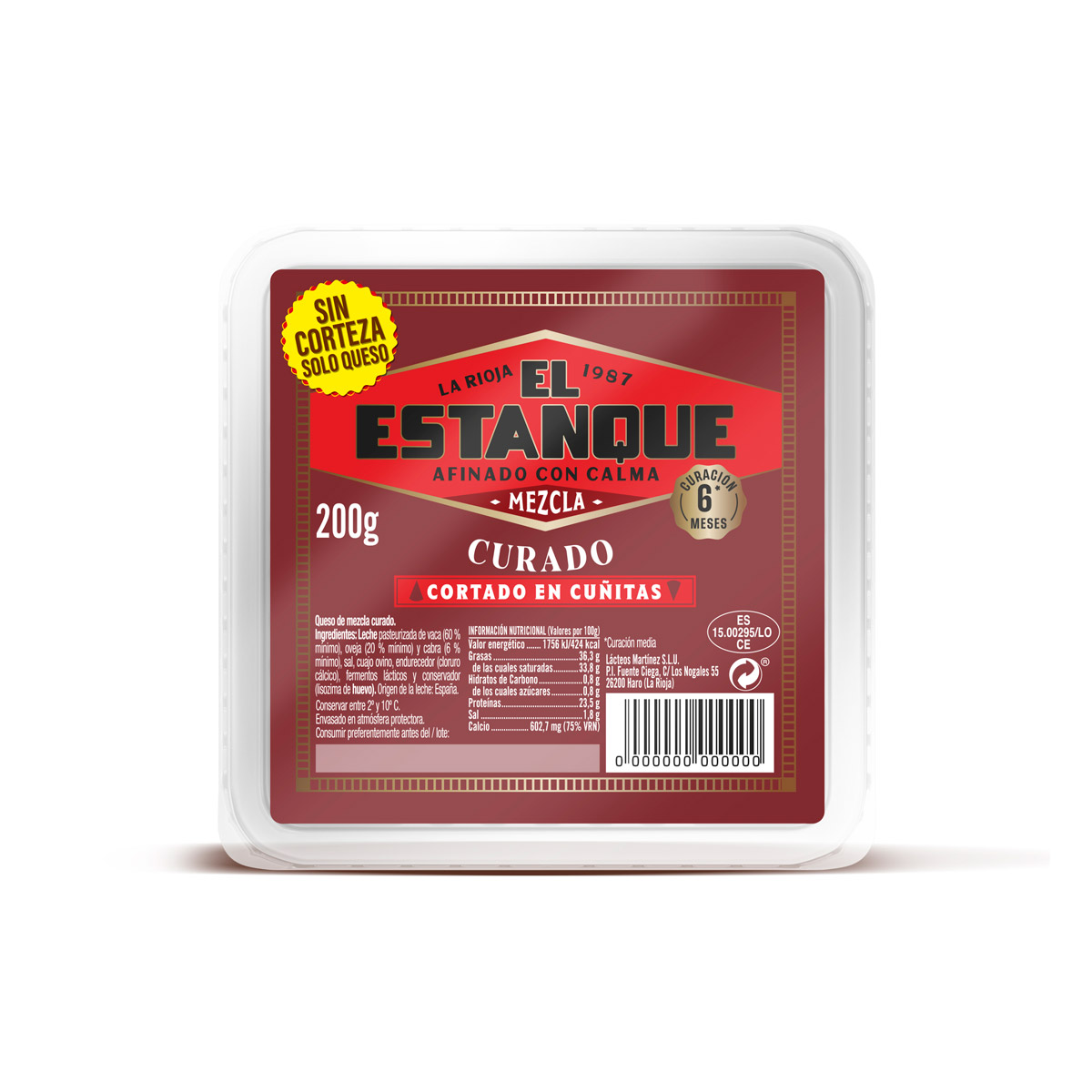 El Queso de Mezcla Curado El Estanque está elaborado con leche de vaca, oveja y cabra, además de cuajo ovino. Su curación en cava es llevada a cabo por el Maestro Quesero durante 6 meses, periodo en el que potencia su sabor y desarrolla su corteza natural, que aporta a este queso un sabor delicioso y auténtico.